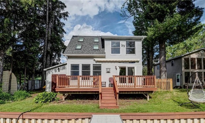 Completely renovated Lake Home on DeRuyter Reservior home is situated perfectly on a peninsula between 50' of pristine waterfront & panoramic views on both sides of the home. This relaxing getaway is guaranteed to create lasting memories you will remember for a lifetime. The property features 2 docks, boat hoist, 2 kayaks, fire pit, and all the amenities needed to enjoy your stay.
