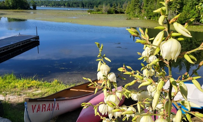 Relax with the whole family at Varaha. A peaceful place to stay, LUXURY 3 Bedroom bungalow cottage on a half acre gorgeous property facing the lake where you can Swim, Snowmobile, Icefish, Tobaggan or just sit and chill at the fire place inside or at a firepit outside!!!
