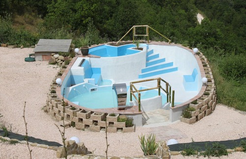 On the lawn and around the house are several places where you can enjoy the beautiful views.There is a small water park for people and animals to cool off, such as a waterfall, small wading pool and a BBQ, which you share with the other guests. Pets are welcome and free in cottage Fuoco