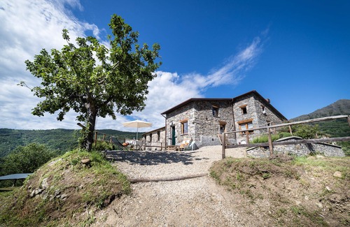 This recently renovated wooden and stone house is part of a larger country house dating back to the first half of the 19th century, in the panoramic setting of the Val Cichero. Here is our farm, which houses cabannine cows, donkeys and hens. Behind the wonderful amphitheater of Monte Ramaceto and at the front a large hill with olive grove.