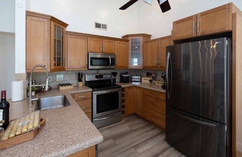 Welcome to Relaxation Villa in the stylish and quiet Royal Palm Beach neighborhood of WPB. You’ll quickly see how our vacation villa got its name when you feast your eyes on the private dry sauna in the primary bedroom and the luxurious hot tub and pool in the secluded backyard. Everything is included to make your next Florida getaway one of a kind. You’ll be in close distance of shopping and dining area, settle in, relax, and enjoy! The space The modern interior of this 3 bedroom/ 2 bath home makes it a great vacation stay for families, reunions, or the ultimate friends’ trip! With plenty of indoor and outdoor areas for living and relaxing, you might never want to leave. Wake up with a fresh cup of joe under the covered patio or spend the day lounging on the custom chaise lounges while the kids splash away in the crystal clear pool. Amenities of the home include: ★ Laundry Facilities onsite ★ Fully-equipped kitchen ★ Pack and Play and highchair ★ Outdoor lounge chairs ★ Fully customizable dry sauna ★ Hot tub ★ Covered Patio with pool table Living Spaces The perfect place for the whole group to gather, whether for a kids vs. adults game night or a movie on the enormous 65’’ flat-screen TV (don’t forget the popcorn!) is right here in the heart of the home. Beautiful genuine leather sectional reclining couch that offer comfortable seating for all in the spacious living room, and the chic modern decor makes the space feel bright and airy. Kitchen & Dining Whether you have a culinary genius in the group or choose to hire a chef, the fully-outfitted kitchen is ready for whatever you have in mind. From quick breakfasts to a gourmet dinner, you’re all set with pots and pans, state-of-the-art appliances, and dinnerware. Appliances include: ★ French-door refrigerator ★ Glass top range with full-size oven ★ Blender ★ Double toaster ★ Full-size dishwasher ★ Over-the-range microwave ★ Coffee/espresso machine ★ Barware, cutlery, and tableware ★ Ice machine to rejuvenate after a hot day ★ Cocktail shaker set Gather for meals in the open dining area where there is Comfortable seating for six at the table and additional three bar stools. Every meal just feels great here. Bedrooms & Baths Each of the 3 bedrooms is outfitted with memory foam mattresses and cozy furnishings, making a welcome retreat at the end of a long day of shopping or beachcombing. If you’re lucky enough to stay at the relaxation villa, you’ll be blown away the moment you step into the spacious room. A king bed with sumptuous linens awaits for the most restful nights ever. End the day by catching up on the news or your favorite show on the flat-screen TV, while sitting on the very comfortable velvet club chairs. The massive walk-in closet has more than enough space to keep your travel wardrobe neat and organized. When the ultimate relaxation is needed, look no further than the digital dry sauna with customized lighting and Bluetooth. Melt away any aches right along with your cares and worries, and choose the lighting and music that matches your mood. We provide fluffy towels for the complete spa experience. Although saunas are widely recognized for their multitude of health benefits, it’s extremely rare to find a vacation rental with such a luxury and we’re excited to offer this unique amenity to our guests! The primary ensuite bathroom features a double sink vanity and a tiled walk in shower. The second guestroom is home to a cozy queen bed, and modern minimal decor that makes the room feel fresh and clean. A Smart TV is provided so you never fall behind on your favorite show. And comfortable lounge chair. The third bedroom is great for kids or adults. With two twin bunk beds, there’s room for four in this bedroom! We provide top-quality toiletries for your convenience. Outdoor Amenities The only thing that surpasses the comfort and luxury of the interior of this home is the exterior amenities. Feel worlds away in the completely private enclosed pool area, surrounded by lush palms and native landscaping. Experience the ultimate backyard oasis that offers something for everyone. Beat the heat in the cool, inviting waters of our uniquely-shaped, spacious pool or soak up in the hot tub. The pool deck is equipped with sumptuous lounge chairs that is the perfect nap spot if we do say so. Or curl up with your someone special on the round cushioned daybed with built-in shade. You see these daybeds at all the top hotels and we’re happy to provide one for our guests. Experience the ultimate backyard oasis that offers something for everyone. Beat the heat in the cool, inviting waters of our uniquely-shaped, spacious pool or soak up in the hot tub. Our covered patio area beckons with nice big pool table to enjoy a game with your family r friends. As the sun sets, or indulge in pure bliss in the bubbling warmth of our hot tub. The possibilities for enjoyment are endless in this incredible outdoor space. Other features of the pool area include: ★ Pool ★ Propane grill ★ Dining table that seats 6 ★ Pool towels ★ Floating Lounge Chairs ★ double daybed ★ Pool table Guest access Access is available through a keyless lock. The code will be provided before check in. Other things to note Be aware that use of the hot tub, pool, and sauna are at your own risk. We ask that children are closely supervised around the pool and hot tub. House-trained dogs are welcome, but please let us know in advance that you are traveling with a pet.