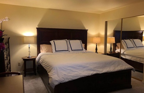 This is a private, entire floor of a three-story house ( No one is sharing any room and anything with you throughout the entire house ). Your friends and family have plenty of room. This unit can comfortably accommodate 10 people. There is a big bedroom with 2 queen beds, a large bedroom with a king size bed and sofa bed, and a huge living room with a sofa bed and couch. The unit has its own mountain and water views. It has a private entry from the attached garage and a private side door to the living room. It has its own patio, kitchen, living room, eating area, laundry room, and a full bathroom, not shared.