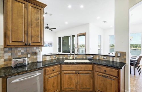 Enjoy walkable access to the renowned Lakeway Resort and Spa, where day passes are available for a fee (subject to availability), giving you access to a variety of upscale amenities including a family pool, an adults-only pool with a swim-up bar, a kids' pool with a waterslide and splash pad, a relaxing hot tub, and cozy evening fire pits. Lounge chairs are available on a first-come, first-served basis, and guests can also enjoy poolside food and drink service for purchase or eat at the resort restaurant. Lakeway Marina is located on the same grounds as the condo and offers boat and jet ski rentals so you can spend a fun-filled day out on Lake Travis!