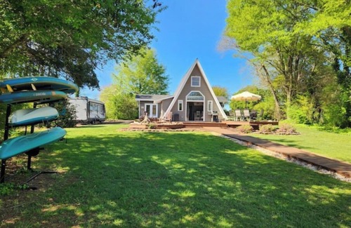 Nestled amidst the serene beauty of North Carolina's Lake Tillery, this A-Frame retreat beckons with its charming allure for unforgettable gatherings with friends and loved ones. The perfect blend of relaxation and adventure. With a spacious outdoor area, ideal for al fresco dining under the stars or simply unwinding in nature’s embrace, every moment here is infused with tranquility and joy. Escape the ordinary and embrace the extraordinary at our lakeside haven.