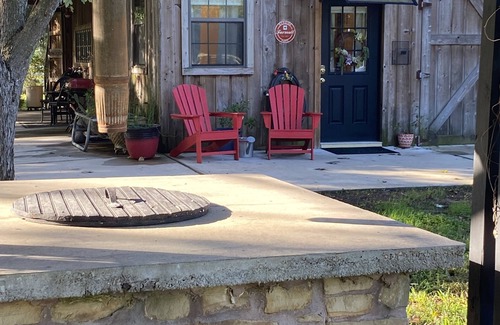 This is a two bedroom apartment on the ground floor of a converted cedar barn.Decorated in farmhouse decor, it has 2 queen bedrooms, 1 full bath, a living room and a kitchen. There are front and back private entrances and a large covered patio. Located at Honey Farm Rentals, the grounds are large, peaceful and appealing. The neighborhood is quiet, relaxing and safe. Our farm is small but we do have animals, beehives and a pasture. Pets are only allowed upon approval by owner, since there are a variety of other animals and people on the property.