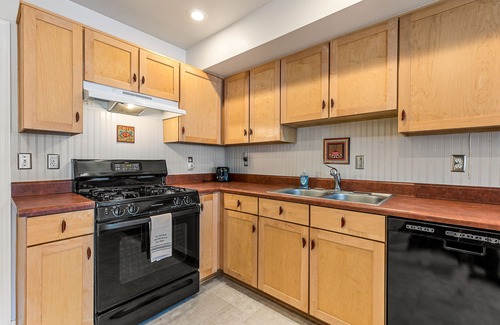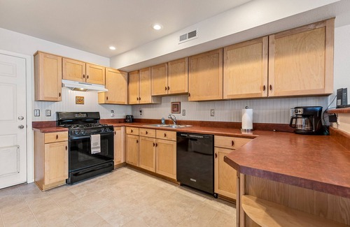 The kitchen is fully equipped for all your cooking needs, making for easy meal preparation. The kitchen features a large refrigerator with ice maker, built in microwave, coffee maker, toaster oven, blender, dishwasher, and a full array of cooking utensils and dishware.