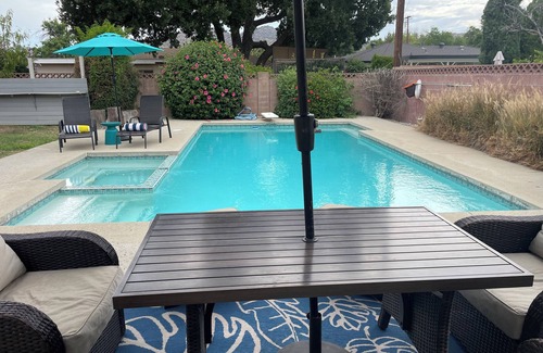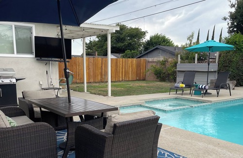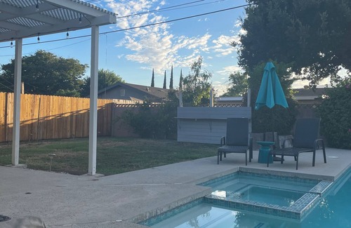 - Relaxing 3 Bedroom, 2 Bathrooms. Large backyard, pool, jacuzzi + 2 patios, grill