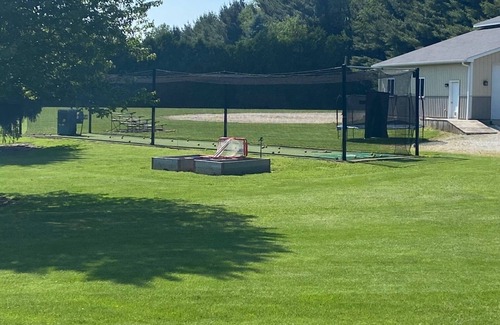 Or venture into the finished heated pole barn that houses a gigantic 40 foot movie screen with surround sound. Play on the rock climbing wall. Or let your kids play various large and small toys like an indoor jungle gym.
