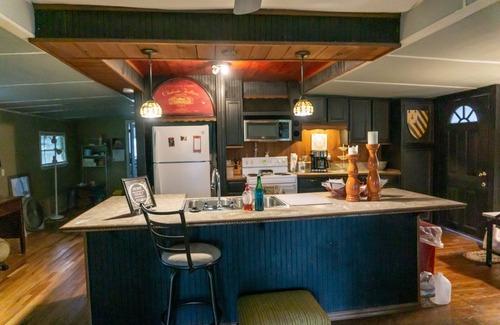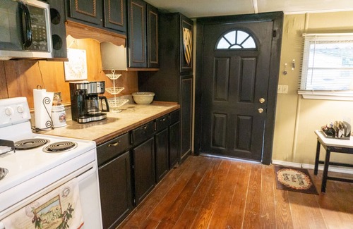 Great little cabin at Horseshoe Lake, AR, just 30 minutes from downtown Memphis. Enjoy the covered patio surrounding the cabin that's shaded by the towering pecan trees. The cabin features an open floor plan with a large island kitchen open to the dining and family room, perfect for family gatherings! Fully stocked kitchen for cooking meals and enjoying morning coffee provided, and even includes a dishwasher! The decor is eclectic Memphis style along with an acoustic guitar available for those who play. There's a kids corner with a table and toys, along with some adult games and puzzles. In the living room is a Roku Smart TV and wireless internet is also provided.