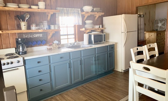 Cabin 7 may receive a beach-inspired update this summer, with the interior wood walls painted white or beige to create a lighter, coastal feel. We are continually improving the property, so updates are ongoing. As a result, décor and finishes may differ from the photos as we make enhancements.
