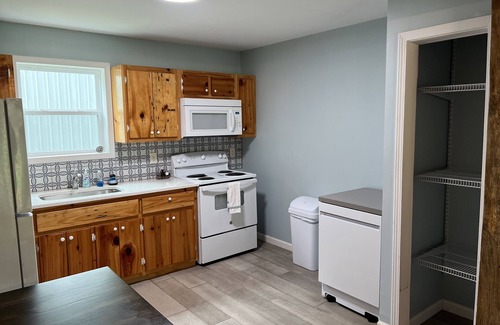 Artfully renovated and nestled on a 78-acre private farm in the mountains, this charming cabin is the perfect getaway to recharge your batteries and soothe your soul. Enjoy the sounds of nature and a flowing stream from the spacious back deck. For hiking and mountain-bike enthusiasts, mountain trails, beautiful ponds, creeks, and forests are right outside your door. Stay warm (or cool) in climate-controlled comfort. Cozy up in front of a quaint, wood burning stove in a den with a large screen cable TV and WiFi. This cabin also has a fully equipped kitchen (stove/oven, microwave, refrigerator, Keurig coffee maker, pots & pans, utensils, dinnerware and limited spices); two bedrooms (one king and one queen); a spacious bathroom; and a washer and dryer.
