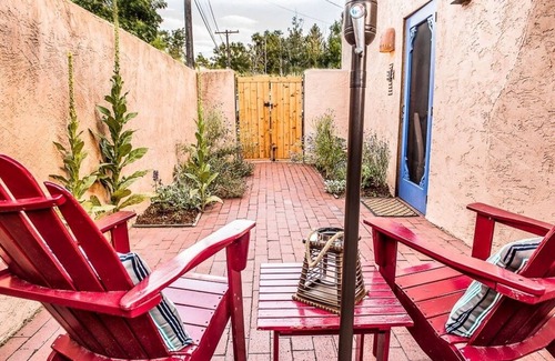 Our beautiful and cozy Casa Hovel, located a hop away from the Ivywild eateries, a skip from the Broadmoor and a jump from downtown, is the ultimate place to stay for your next trip to Colorado Springs. This home is unlike any other you have experienced. Built in order to sustain efficient living, Casa Hovel has a unique, southwestern feel. The adobe exterior, colorful tiles, kiva fireplace and ceiling vigas will leave you feeling comforted and relaxed for your entire stay. While the home does include two bedrooms and one and a half baths, each bedroom is located in a separate building, accommodating the privacy of our guests.