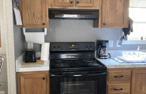Keenan’s at Keaton Beach offers a comfortable, relaxing living while away from home. It’s the perfect place to enjoy spending time with family and friends! The living room boasts a sofa, oversized chair w/ottoman, and a large TV. Wifi is available. We do have a desk and a computer chair if needed. A full kitchen and dining room table makes mealtime easy and gives an opportunity to dine as a family. No worries, coffee is always provided! On the front porch there is a gas grill and comfortable seating available for use. Keenan’s at Keaton Beach is also pet friendly! The master bedroom includes a king size bed, a full bathroom, closet area, and dresser space. The second bedroom features a bunk bed with brand new twin- and full-size mattresses (closet space is also provided). There is also a second full bathroom. The neighborhood offers plenty of dirt road space for riding ATVs as well. The spacious yard offers plenty of remote parking for RV’s, cars, and boats. Keaton Beach is only a 10-minute drive away. The boat ramp is a 5-mile drive and offers easy access to Keaton Beach and crystal-clear waters with year-round sports. Keaton Beach is the perfect destination for a weekend getaway or days of relaxation and fishing..