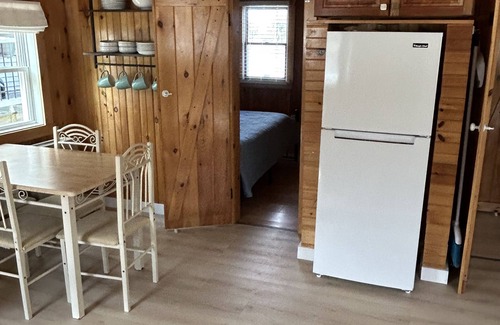 Two bedroom cozy cottage with a kitchenette, a screened porch and located right on the water.