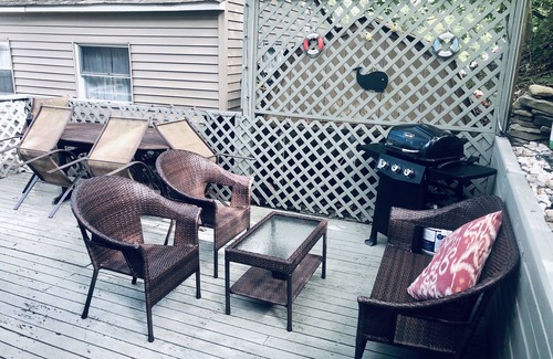 Small deck to relax in the evening, gas grill, parking. Just minutes from several local farm stands - boasting glorious local fruits and vegetables, Tanger Outlets, 10 mins to Splish Splash Water Park, fine dining and wineries, 5 minutes to ocean beaches, East Wind Day Spa, Steps from Baiting Hollow Club - 18 Hole Golf Course and many local wineries. Come and spend time with the family, get to know our friendly locals. Play on the private beach or just bask in the sun with a book. Girl's weekends, family getaways, beach vacations or any reason, who doesn't want to spend time close to the beach for the same rate as a hotel?