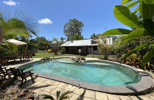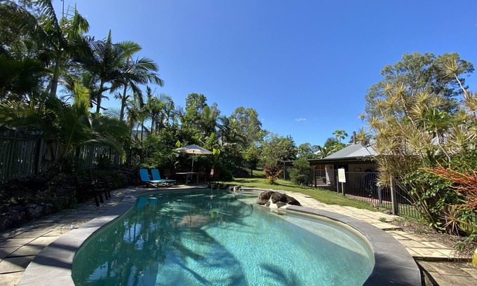 Sabai jai homestead is situated in a quiet , peacefull country setting but still only twelve minutes from coolum beach. With a private salt water swimming pool to enjoy and sprawling tropical fruit gardens, it has numerous areas to take a seat or just wander about . The large entertainment area is another perfect spot for relaxing with a gas bbq and various hamoks . It also has a large outdoor banquet style table for a second dinning option with abundant wild life to enjoy. Free wifi. Close to Eumundi-Noosa and Yandina weekend markets. The house has three large bedroom with king and queen beds. Large lounge room with big screen TV .The kitchen is fully equiped with complimentary tea/coffee making facilities. A wonderful place to relax and unwind and connect with nature.