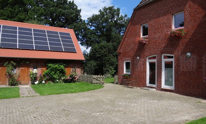 As a small environmental bonus, we also offer the whole thing CO2-neutral. Our central ventilation system ensures sufficient fresh air and a healthy indoor climate (ideal for allergy sufferers!). In addition to our own beekeeping, you can marvel at the rare animal breeds that live here on our farm: the East Frisian seagull (chicken), the Mechelner (chicken), the Diepholzer goose and the German laying goose are all animals on the red list that we have here breed. Furthermore, in summer a 1.5 hectare sea of flowers blooms directly next to the farm on the specially created, sustainable flowering area ... Enjoy the surroundings near the Teufelsmoor, or swim in the beautiful spring lake right next door ... Regardless of whether you like cycling or prefer long walks, inline skating or just want to stay in the yard ... there's something for relaxation and wellbeing!