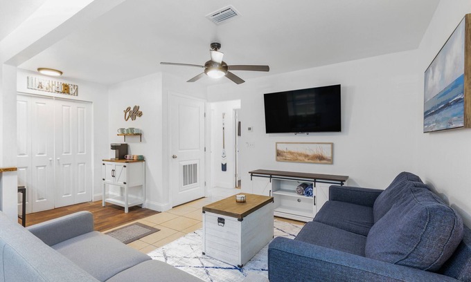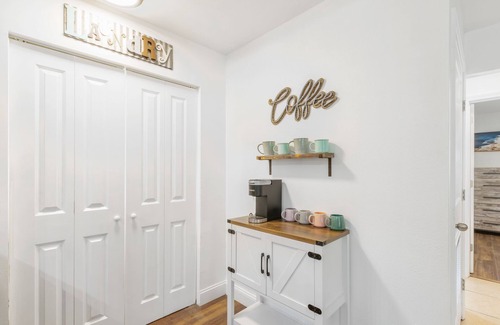 Welcome to one side of our freshly remodeled duplex, designed to accommodate up to 6 guests. With 1 bedroom and a loft featuring a Queen bed (bedroom), 2 Twin Beds (Loft), and a pullout couch in the living room, everyone will have space to unwind comfortably. Located in the heart of downtown Foley, you'll have access to plenty of late-night food delivery options and dining spots. Centrally positioned to various local attractions, here are some distances in miles as times may vary due to seasonal traffic.: