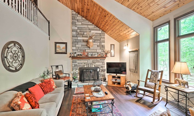 Immerse yourself in Pennsylvania's year-round natural beauty at this 3-bed, 2-bath vacation rental in the gated Eagle Rock Resort! Along with its peaceful location, the home features everything you need for a family retreat, including a full kitchen, a spacious deck, and a fire pit.