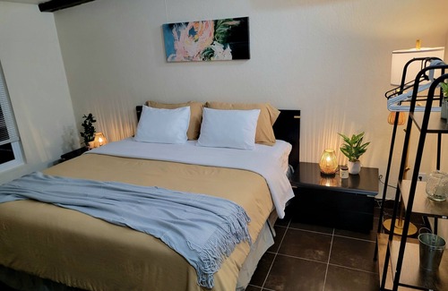 Back house is cozy, private and quiet, has own private road and private entrance. We will not hear you nor you hear us. House has fully equipped kitchen, full bathroom, WiFi, A/Cs and a washer if you need.