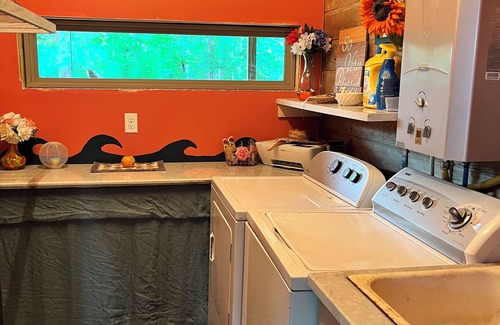 Enjoy Wi-Fi, two smart/Roku/ cable TVs, a full kitchen with all necessities (pots, pans, dishes, spices, wine glasses, coffee pot/ coffee, tea, etc), full laundry room (washer/dryer), and outdoor sitting areas on the back and front porch. 📺🛁🛏️☕️
