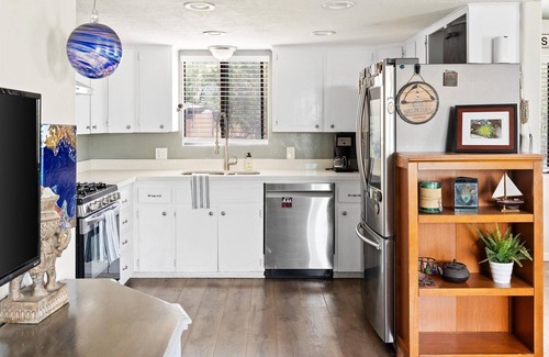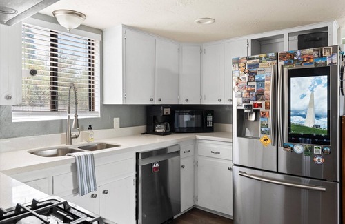 The fully stocked kitchen is a chef's dream, featuring modern appliances, plenty of counter space, and all the essentials you need to whip up delicious meals. Whether you're preparing a quick breakfast before a day of exploring or a gourmet dinner to enjoy together, you'll find everything you need right at your fingertips.