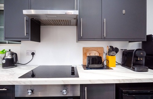 Our kitchen is stocked with all the essentials for you, including complimentary tea, coffee, salt and pepper. As well as all the cooking utensils you could need, whether you're cooking a full meal or a quick snack, you'll find everything you need.