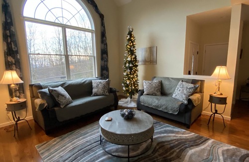 The "Perch on Quapaw" is nestled on a partially wooded, beautifully landscaped lot in the gated community of Eagle Rock outside of Hazleton, PA; just minutes from I-81. Our home is a three story, three bedroom, 3.5 bath, 2 car garage stone front home, located 1 mile to the Lake Beach and less than .6 miles to the Base Ski Lodge.