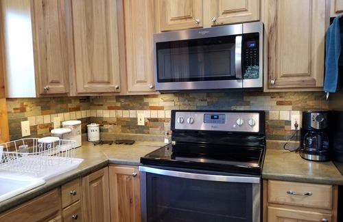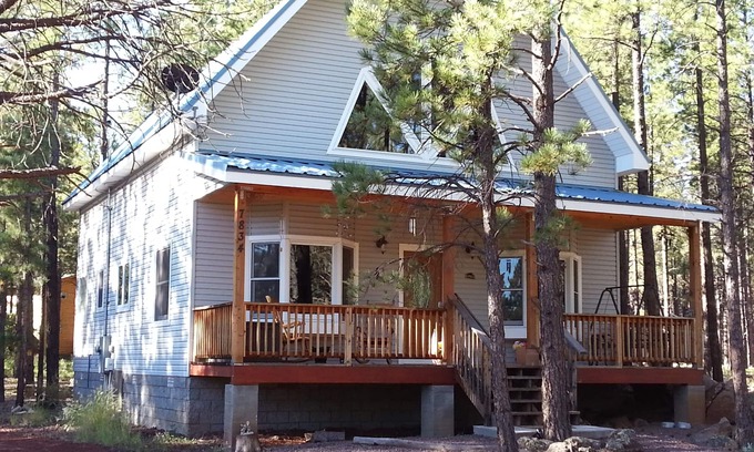 See the stars through the skylights from the new king size bed in the master and the new queen bed in the loft. Both king bedrooms have a tv and dvd player, first floor bedroom has a vcr as well, and an assortment of vhs and dvd movies. The fully stocked kitchen includes everything you need, bring your groceries and make a simple or gourmet meal. The laundry room includes linens and towels. Outside relaxation on the deck, the rustic fire pit area or the front porch. We also provide super fast STARLINK INTERNET!! Again, so many fun activities (winter and summer) are nearby, including the Grand Canyon, Sedona, Grand Canyon Railway/Polar Express, Bearizona, the Deer Farm and Canyon Coaster Adventure Park, as well as museums, observatories and outdoor recreation such as fishing, hiking, skiing, sledding and more. This home will not disappoint you! Check in is after 4pm and checkout is before 11:00 am.