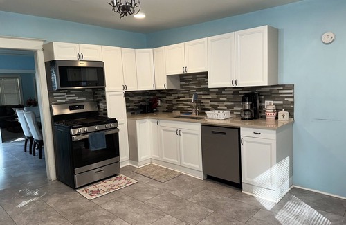 Amazing, warm, relaxing, quite 4 bedroom and two bathrooms. The master bedroom has a 65” Sony tv, recliners and a king size bed. The second bedroom has a nice table, lamp and a queen sized bed. The third bedroom has a nice table, lamp and queen sized bed. The forth bedroom or den has a queen sized bed and private bathroom. The kitchen has high end appliances, Silestone countertops and glass backsplash. This kitchen is very desirable to cook in. The bathrooms are all new custom tile. Enjoy! 😊