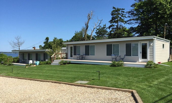 Recently renovated, this unit we call Culloden Point provides a relaxing retreat on Lake Montauk. Culloden Point comes equipped with a separate queen bedroom, queen pullout couch, full kitchen, washer/dryer, linens, towels, large screen TVs, air conditioning throughout bedroom and living room area, access to private lake beach as well as kayaks and paddle boards to enjoy a summer on the water! Dine outside on outdoor deck space or in lighted area complete with gas grill and seating. Guests can enjoy a common seating area with Adirondacks and lounge chairs and a