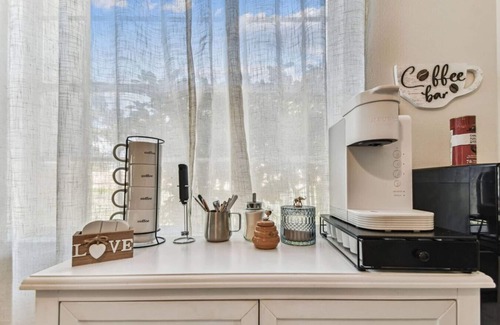 Relax in this modern 3-bedroom home with a pool, spa, and firepit. This home is perfect for family getaways! Located in peaceful Sorrento, just 36 miles from Walt Disney World and near beautiful downtown Mount Dora which is known for its dining, shopping, and charm. Enjoy privacy, parking, corn hole, Blackstone BBQ grill, hammock, and newly renovated kitchen & bathrooms. Sleeps 6 with 1 king & 2 queen beds. Extras include coffee bar and washing machine. Sorrento is safe, clean, and beautiful!