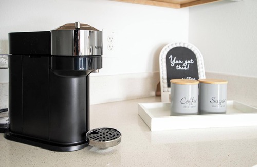 The dining table seats 8, creating the perfect setting for meals and conversation. Guests can also enjoy serene backyard views directly from the dining area. Our modern kitchen includes new appliances, blender, sandwich maker, hot water kettle, coffee station & more. Step outside to the brand-new grill and outdoor dining setup for BBQ nights under the Florida sky.