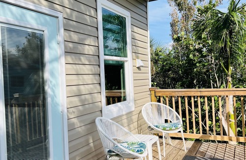 Location, location! Wonderful Non smoking Guest home in a quiet, peaceful neighborhood located in convenient Pine Island Center! Central to everything Pine Island offers which includes our Preserves, Shopping, Bars and Restaurants. Walk a few yards from our Native Landscaped Backyard and enter Beautiful Phillips Park where you can enjoy its Salt Water Olympic Sized Pool, daily exercise Classes and other amenities including its great Pickelball/Tennis Courts! Leave the Car Parked on our spacious Property your entire stay and use one of our Bikes to cruise Pine Island’s nearby Bike path that spans the Island for 16 miles end to end. The path offers great places to stop, relax, hear music and eat. Or just load up the Kayaks provided and drive a short distance to one of Pine Islands easily accessible Kayak launches. Paddle the picturesque Sound ( famous for its flats fishing) if you desire. The Guest house is located in the back of the property behind the Host’s main house so any assistance needed is always nearby. The property is surrounded by lush native vegetation that weave through the property, this is a must see for nature lovers. A short walking distance from the property to Lee County Emergency Services, Pinewood Trails Preserve, Island Museum, Public Library & a Circle K Gas Station. All accessible within a short walk from the Property. After a full day of exploring Pine Island’s Calusa Indian history or venturing by boat to one of the surrounding Islands and Beaches you can come back to a relaxing setting either inside or out the House which features all new Appliances, Leather Recliners, electric heated fireplace, laptop Work areas in both Bedrooms along with a 65 Inch curved TV with ROKU. Find some time afterwards to observe one of our many species of birds eating from the feeder or soak in the relaxing hot tub. You can complete your European Spa like experience by testing test your will power in our hrefreshing Cold Plunge set at 60-65 degrees! There is also an outdoor BBQ area so you can cook up any fresh catch of the Day. The house is perfect for 1 Adult but can comfortably accommodate 2 if required.