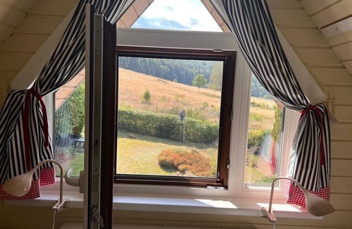 Thanks to its location on the mountainside, the cozy holiday home "Hüttenzauber im Harz" offers an enchanting panoramic view of Wolfshagen in the Harz and the surrounding natural beauty of the Harz.