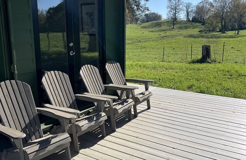Twice Bloomed Cottage is a tastefully designed, retro-fitted sea-land container nestled among the red clay hills of Neshoba County, MS. A generous rear deck and front porch offer space for relaxation and views of the countryside. Located on a working farm, views may include cattle grazing on the hillside.