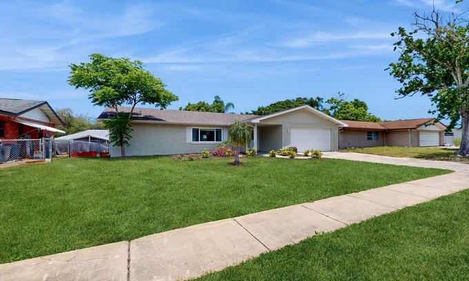 Relaxing, single-level home with a sunroom, large yard, central AC, & fast WiFi is located in Port Orange. Relaxing, single-level home with a sunroom, large yard, central AC, & fast WiFi provides accommodation, featuring Barbecue/Outdoor Cooking, Kitchen, Parking, among other amenities. This House features Barbecue/Outdoor Cooking, Kitchen, Parking, to make your stay a comfortable one.