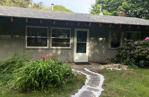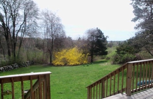 Relax on the deck of this private, roomy beach getaway with AC! Listen to the sounds of the ocean and birds. The huge open concept livingroom/diningroom has cathedral ceilings, a ceiling fan and is great for family dinners and entertaining. The granite kitchen is open to the livingroom and the 3 bedrooms are all bright and clean. The two bathrooms have new floors, fixtures and lighting.. The master bedroom has an attached full bathroom with a new w/d. The wall of windows look out onto the deck with gas grill, and also look out to a huge backyard and a stone wall. An outdoor shower is great for after a sandy beach day. Walking 5 minutes down the private road you get to a picturesque bay with kayaks and sailboats. Lovely family neighborhood. A kayak is available to take serene rides on the Westport river just steps away. A 5 minute ride to spectacular ocean beaches. Nature preserves, great restaurants, horseback riding and movies, museums, malls, and minigolf are all a 10-20 minute ride away.