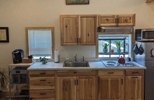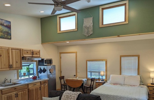 The Lookout is a comfortable studio efficiency, with everything you need. With high ceilings, the space feels open and spacious. We live next door, and are here for anything you might need- but happily respect your privacy.