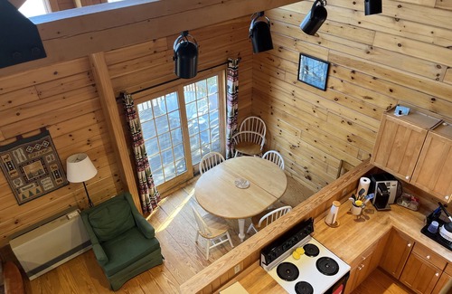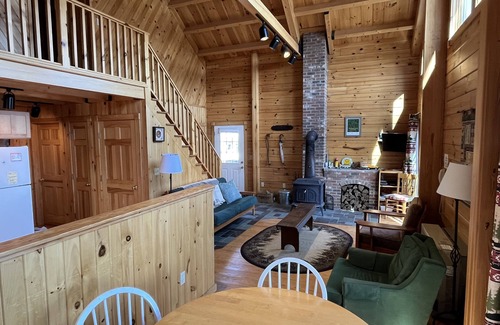 Come enjoy our cozy log cabin perched just steps from the shores of Peacham Pond. Relax on the spacious deck or next to the wood stove while loons call in the distance. Being next to the Groton State Forest, this vacation getaway offers snowmobiling, snow shoeing, cross country skiing, hiking, ice biking,fishing and hunting. It is also an easy 50 minute drive to Burke and Stowe and Craftsbury ski areas. High speed internet is available at the house but cellular service is 20 minutes away.