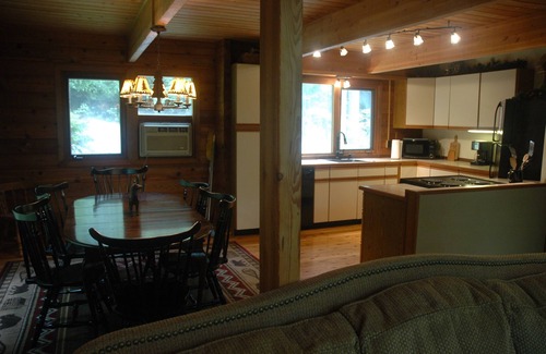 Our home sleeps 6 people designed especially for families. We rent to people 25 or older. The 2 upstairs bedrooms share a full bathroom and the other bathroom is located downstairs. We have a large 50 inch Smart TV in the Great Room, and we have provided a canoe and 7 kayaks for your enjoyment. We have also provided a gas grill for those of you who enjoy grilling. There is also a fire pit.