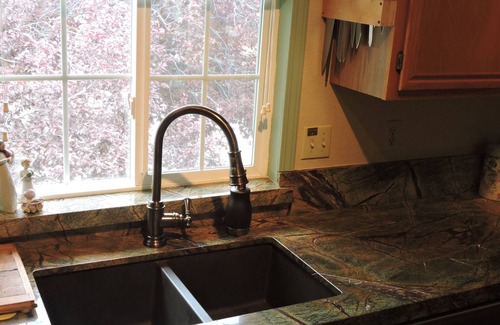 Built into a slope on a beautifully landscaped corner lot, our 1994, 1800 sq.-foot, split-level home was recently renovated. The main level features beautiful Brazilian Cherry floors throughout, so we do request that guests remove their shoes in the tiled front entry.