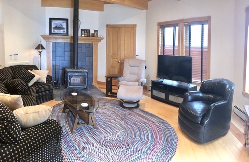 As you wind your way to the top level surrounded by windows with sneak peaks of the lake and woods is a sleeping loft with queen bed and Serta sleep bench (twin), gas Vermont style stove, book shelves and reading nook for viewing the ever changing lake or just a cozy lofty get-a-way.