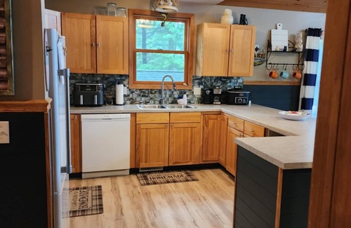 Welcome to our newly remodeled (Spring 2025) family-owned lakefront cottage on beautiful Hogback Lake — a private, peaceful all-sports lake perfect for year-round fun and relaxation!