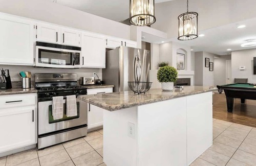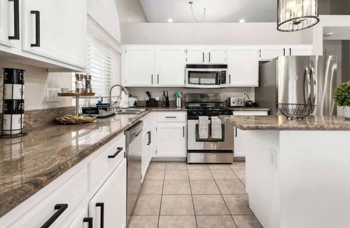 Enjoy the sunny Nevada weather with a dip in our sparkling private non-heated pool. Take advantage of the high-speed wireless internet, a fully equipped, spacious kitchen for family dinners, and don't forget to include your furry friend! Our airy, open concept lends itself to group gatherings and endless entertainment.