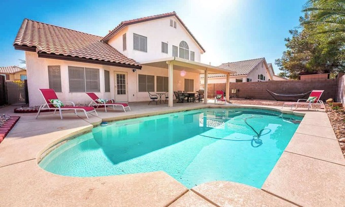 Take a short trip to the Strip, or enjoy our sparkling swimming pool and BBQ grill in our private backyard. This home features a pool table, multiple 70 inch+ TVs with major streaming sites, and tons more entertainment!!