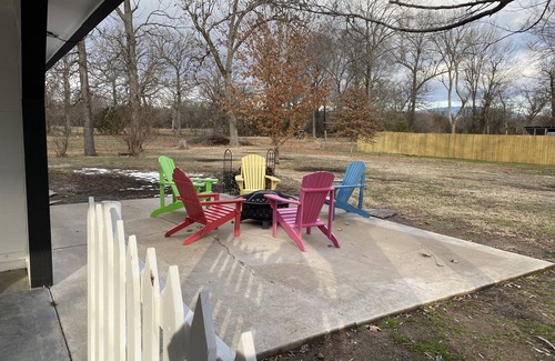 The place has a yard big enough for games, frisbee w/ the dog & kids to romp & play. Hang out on the patio w/ fire pit. The house is at the foot of Poteau & Sugarloaf Mtns w/ hiking & ATV trails . …..