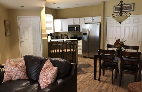 The unit has been completely remodeled with brand new appliances, living room and bedroom furniture, three flat panel TV's, new mattresses, bedding, linens, and accessories and other cookware and utensils for the kitchen. The unit can comfortably sleep up to 4 with a king bed in the master bedroom, and a queen bed in the guest bedroom.