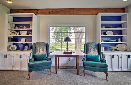Ditch the stresses of reality and treat yourself to a relaxing countryside retreat in Liberty, Missouri! Situated less than a 30-minute drive from Kansas City's vibrant downtown, you'll be able to explore city attractions in addition to spending time at this restored home located on a working farm. The 4-bedroom, 3-bathroom vacation rental offers plenty of space for large groups, a full updated kitchen, and charming original elements of the house mixed with desirable modern amenities.