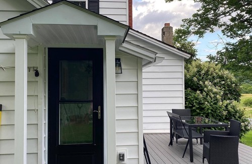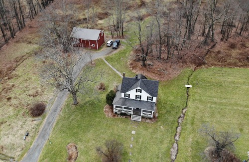 Mertle Farm The Farmy Charmhouse! A 130 year old renovated farmhouse with a private barn, set on 5 acres and surrounded by 250 acres of peaceful rolling hills, farmland and forest. Keeping original details, the house has full amenities with 2 luxury bathrooms for any savvy NYC weekender, nature enthusiast looking to escape to the country. The kitchen and downstairs bath have just seen a complete luxury renovation with brand new appliances and Le Crueset cookware!